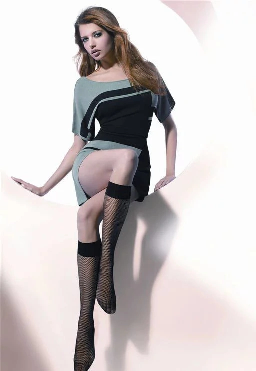 Bavlněné dámské podkolenky se vzorem, pruhy na kraji podkolenek Podkolenky jsou pohodlné a teplé a v