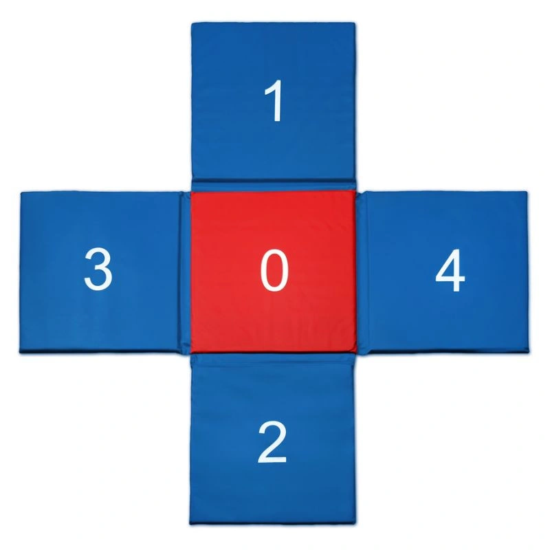 Křížový vzor podložky umožňuje pohodlné provádění cviků v různých směrech. Barevně označený středový panel usnadňuje organizaci činností a nastavení výchozích pozic. Díky skládacímu provedení nezabírá podložka při skladování a přepravě mnoho místa.