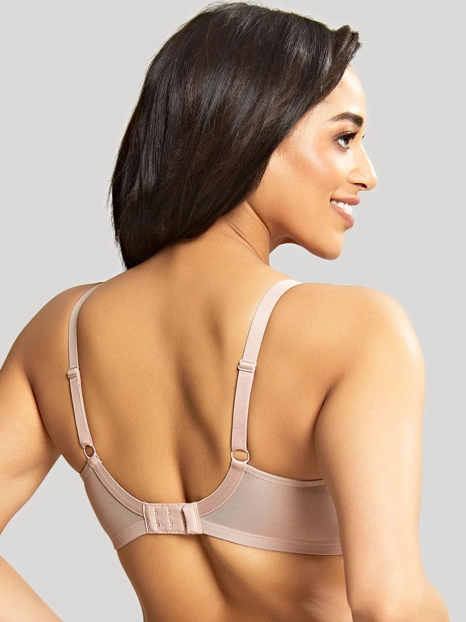 Podprsenka Panache Ana Plunge má vrchní košíčky z ženské elastické krajky, zakončené mašličkou ze saténové stuhy a krásnými detaily z korálků. Spodní část košíčků podšitá stabilizátorem a vnitřní boční ramínka poskytují pohodlnou uvolněnou oporu a zvýšený střih až do velikosti košíčku H. Ana má sexy hluboký výstřih, který je ideální pro oblékání pod oblečení s hlubokým výstřihem! třídílné košíčky s horními košíčky z elastické krajky a spodními košíčky s podšívkou Křídla z elastické síťoviny vám zajistí pevné a pohodlné obepnutí těla Plně nastavitelná ramínka Drátěná vnitřní boční poutka pro centralizaci poprsí