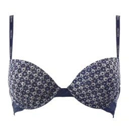 Měkká dámská podprsenka typu "soft". Košíčky modelu jsou vyrobené z efektní tmavě modré krajky. Me