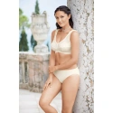 Pohodlná odlehčovací podprsenka bez kostic v kombinaci "superfine" mikrovlákna s krajkou a sametem Vám zaručí maximální komfort a pohodlí při nošení. Materiál je obzvláště jemný a hebký, což ale nijak neomezuje jeho funkční tvarovací vlastnosti. Podprsenka v černém provedení má transparentní košíčky podložené podšívkou tělové barvy. Tím je dosaženo optického zmenšení poprsí. materiál/zpracování " Superfine " mikrovlákno kombinované s krajkou a sametem pro jemný, hladký a elegantní vzhled s maximální účinností výstřih a průramky jsou lemovány sametovou paspulkou anatomicky tvarovaná prsní podpěra zabraňuje tlaku na žaludek košíčky trojdílný střih košíčků se postará o krásné, žensky tvarované poprsí ploché zpracování švů je velmi příjemné pro pokožku ramínka odlehčovací funkční ramínka jsou zdobena dekorativní krajkou nastavitelná a měkkce vypodložená ploché spony na ramínkách neobsahují žádný nikl s přibývajícími velikostmi se ještě rozšiřují zadní díl s přibývajícími velikostmi se ještě rozšiřuje s přibývajícími velikostmi je ještě více zpevněný nastavitelný do 3 poloh zvláštnosti speciální střih zadního dílu umožňuje zachování vyššího průramku, ale zároveň použití užšího zapínání