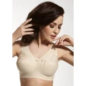 Podprsenka je měkká, krásně obepíná poprsí a při nošení je velmi pohodlná. V horní části je model ozdobený efektní výšivkou s květinovým motivem. V místě spojení košíčků je saténová mašlička. Pohodlná široká ramínka jsou zárukou vysokého komfortu při nošení.