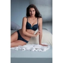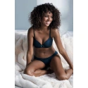 Měkká dámská podprsenka typu "soft". Košíčky modelu jsou vyrobené z efektní tmavě modré krajky. Me