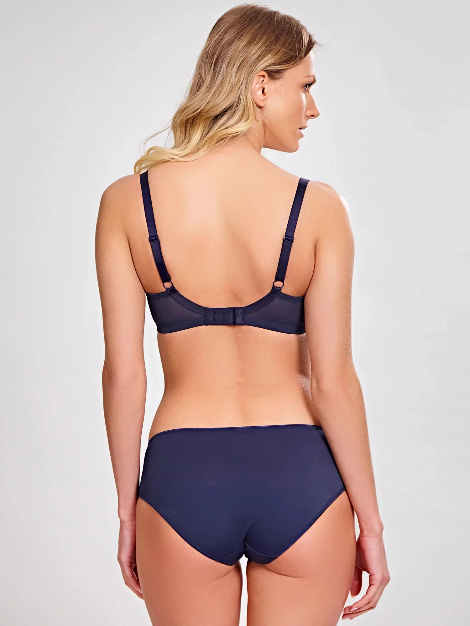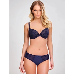 Měkká dámská podprsenka typu "soft". Košíčky modelu jsou vyrobené z efektní tmavě modré krajky. Me
