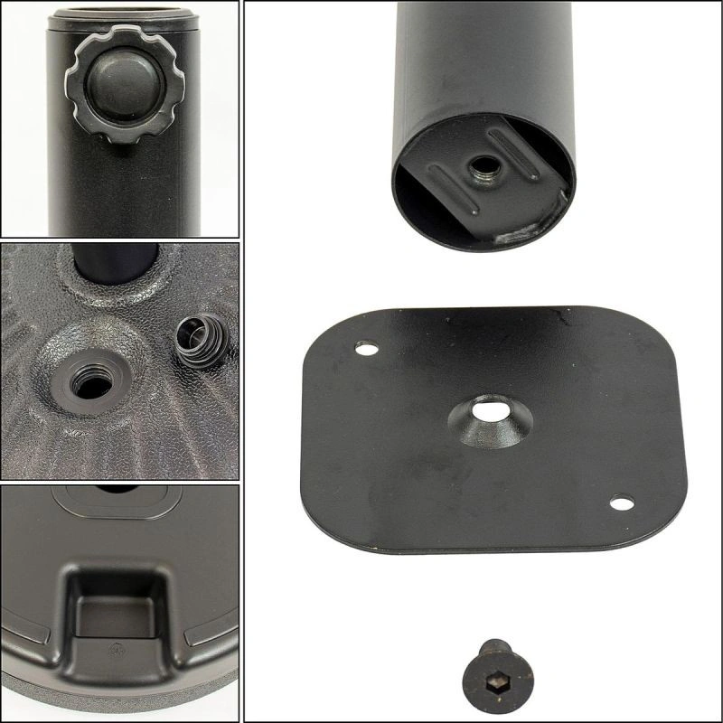 Díky nastavitelnému průměru od 38 do 48 mm je základna kompatibilní s širokou škálou zahradních slunečníků na trhu. Ať už máte slunečník s tenkou nebo silnější tyčí, naše základna se do ní snadno vejde.