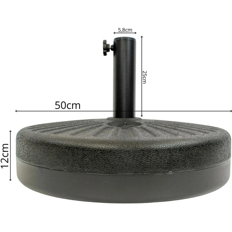 PLASTOVÁ PARASOLOVÁ PODSTATVA PRO NAPLNĚNÍ VODOU 22 kg VODOU je ideálním řešením pro ty, kteří u svého zahradního vybavení hledají stabilitu, odolnost a estetiku. Díky své robustní konstrukci, snadnému použití a modernímu designu zajistí tato podstava pohodlný a bezpečný venkovní odpočinek po celou sezónu.