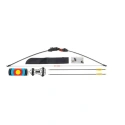 Obsah sady: 2 šípy ze skelných vláken, toulec na šípy, chránič předloktí, střelecký terč, opěrka na šípy, zaměřovač