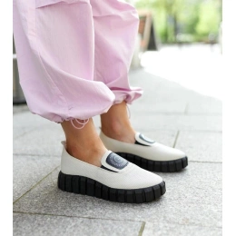 Černo-bílé polobotky s masivní podrážkou Teska Ace jsou moderní boty pro ty, kteří hledají progresivní obuv. Jejich nízký design a mandlový tvar špičky jim dodávají jedinečný charakter a jsou velmi pohodlné díky možnosti zasunutí nohy. Vyrobené z vysoce kvalitní gumy, poskytují odolnost a pohodlí po mnoho hodin nošení. Skvělé na každý den i speciální příležitosti. Materiál povrchu: ekologická semišová kůže. Vyztužení: žádné. Materiál podrážky: guma. Barva podrážky: černá. Uzavírání: zasunutí. Kolekce: jaro/léto.