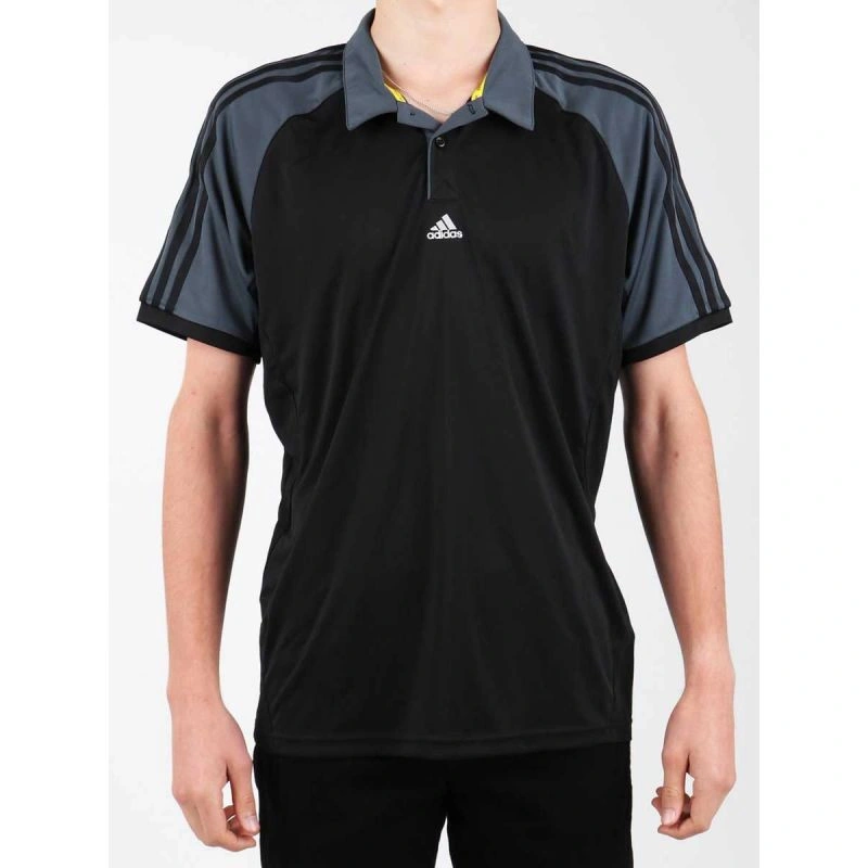-Černá polokošile s krátkým rukávem-Šedá barva na ramenou a límci-Zapínání na 2 knoflíky-Materiál: 100% polyester