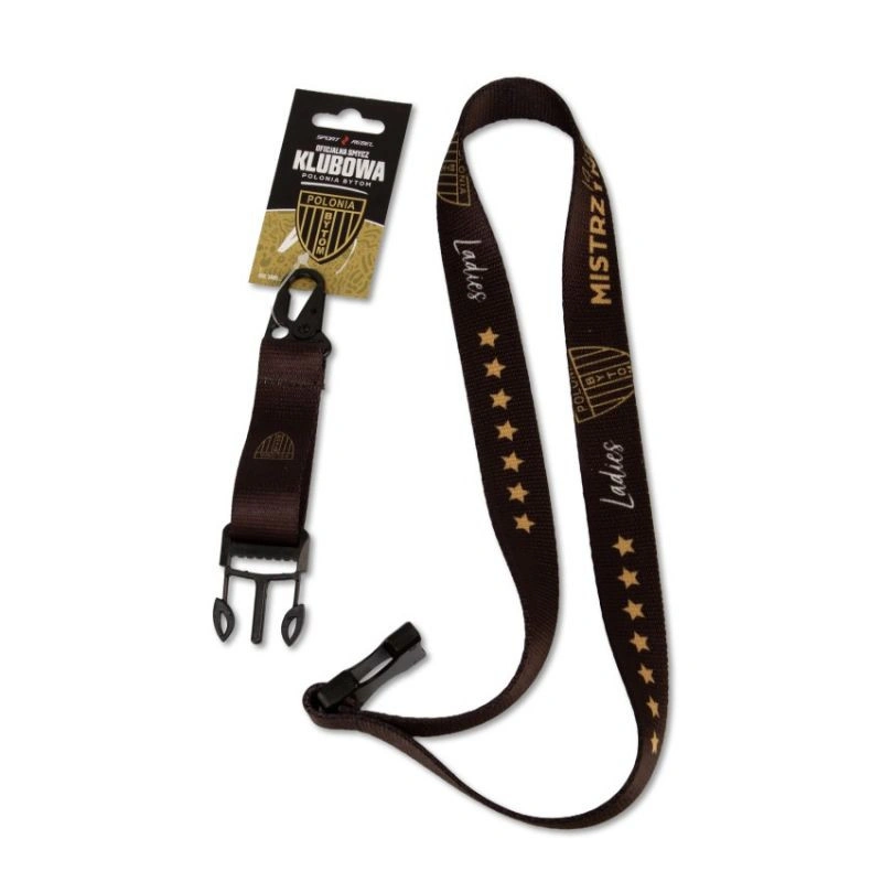 Smycz Polonia Bytom Premium Smycz Polonia Bytom Premium to niezbędny gadżet dla każdego wiernego kibica. Czarna barwa, złote napisy i gwiazdki zgodne z tytułami mistrzostw polski oraz herb drużyny sprawiają, że doskonale prezentuje się zarówno na co dzień, jak i podczas meczów. Główne cechy: Oficjalny design: Smycz utrzymana w czarnej kolorystyce z powtarzającym się logotypem Polonia bytom złotymi napisami i gwiazdkami – idealnie podkreśla przynależność do klubu. Solidna i wygodna: Wykonana z trwałego, przyjemnego w dotyku materiału, odporna na codzienne użytkowanie. Wielofunkcyjna: Wyposażona w bezpieczne zapięcie typu „klik” oraz metalowy karabińczyk – świetnie sprawdza się do przypięcia kluczy, identyfikatora czy karty kibica. Dopracowane wykończenie: Estetyczne szycie i wysoka jakość nadruku sprawiają, że smycz wygląda profesjonalnie i długo zachowuje intensywne kolory. Smycz Polonia Bytom Premium to praktyczny i stylowy dodatek dla każdego fana toruńskiego h