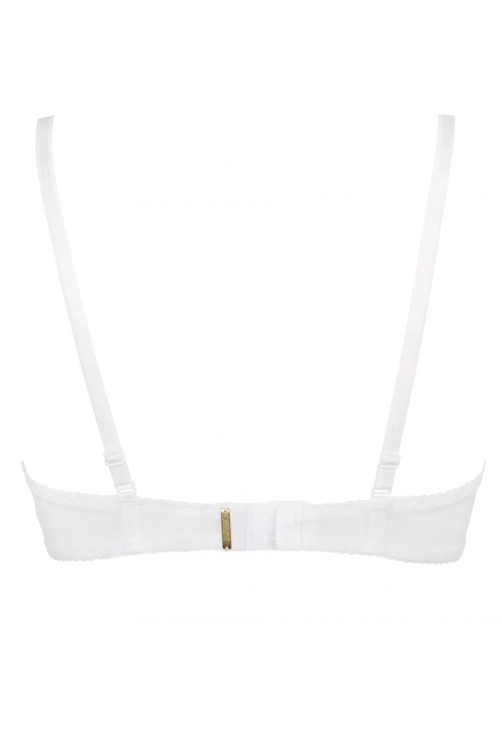 Smyslná sněhově bílá polopodprsenka Neige, která svádí svými nepřehlédnutelnými průstřihy košíčků.Polopodprsenka je vyrobená z jemné tylové síťovinky, která podtrhne a zdůrazní vaši ženskost a smyslnost. Na kráse dodávají modelu hravé mašličky. Model má boční kostice. Ramínka je možné nastavit, ale nelze je odepnout. Zapínání je na dva háčky s třístupňovou možností nastavení velikosti obvodu.Souprava vytvoříte společně s kalhotkami string a podvazkovým pásem Neige.