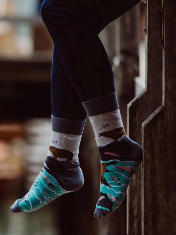 Ponožky jsou ozdobené zábavným vzorem. Model má vytvarované chodidlo a lem, který při nošení netlačí.