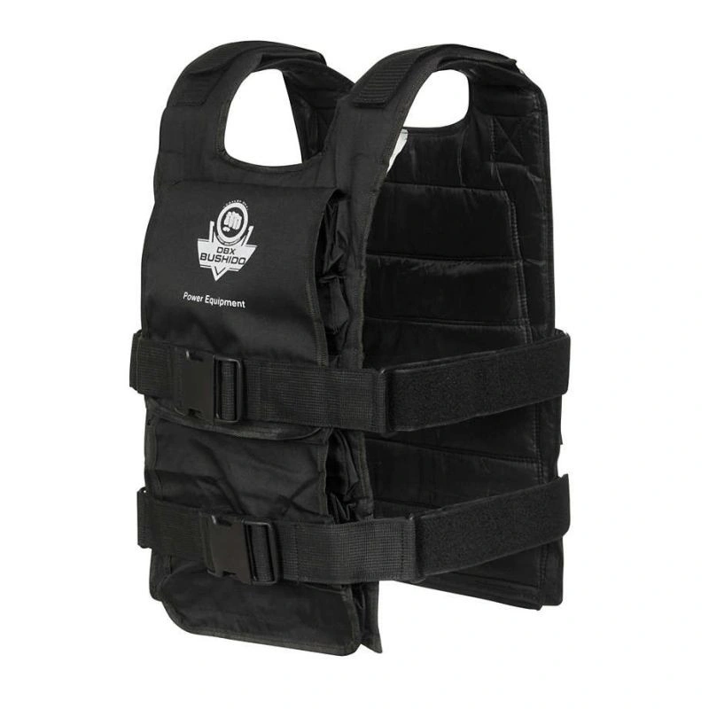 V případě použití písku bude hmotnost jedné vložky po naplnění cca1,2 kg, což ve výsledku znamená celkovou hmotnost vesty cca 18 kg (součet hmotností vložek a vesty).