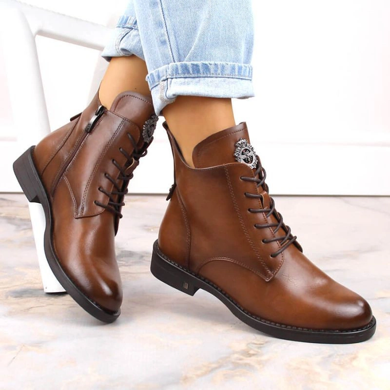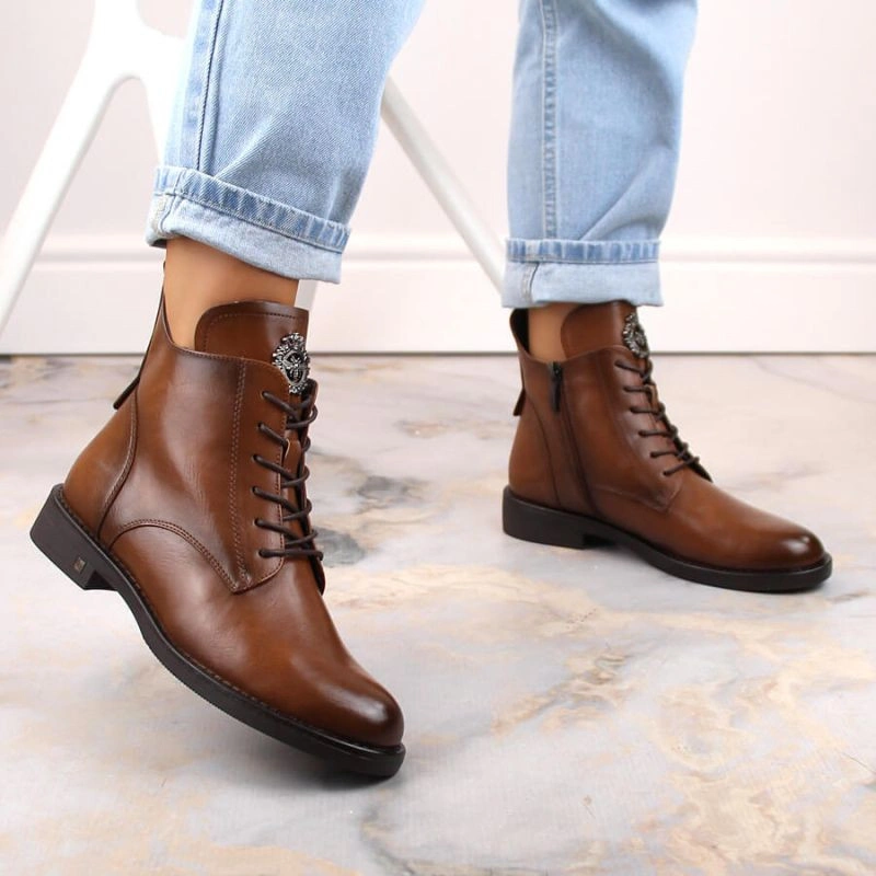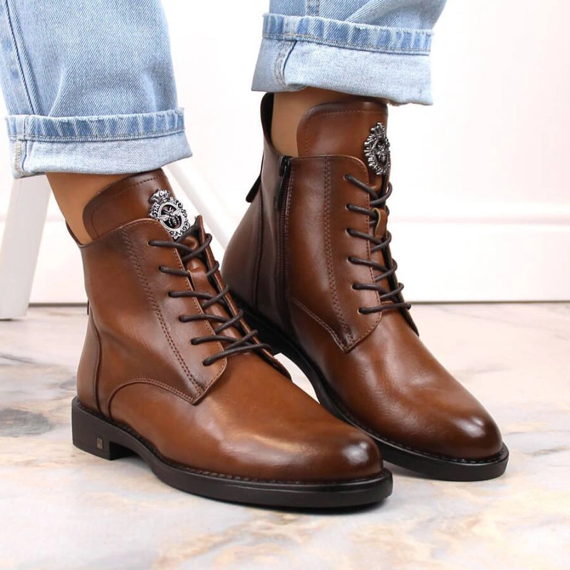Potocki W WOL171C hnědé boty se šněrováním a zipem Vlastnosti: kozačky Potocki ideální na podzim a