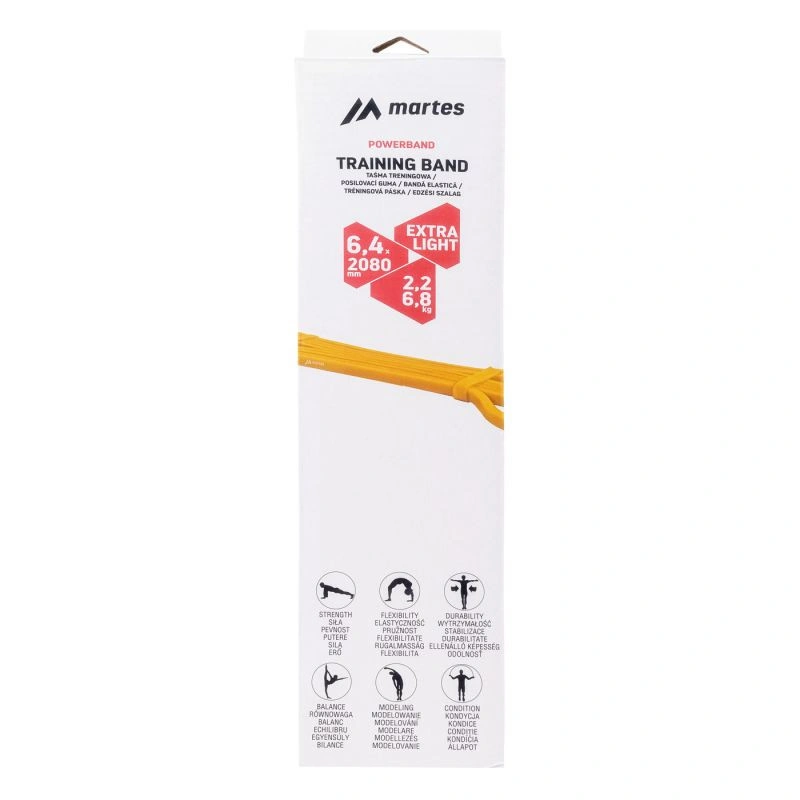 ODOLNOSTNÍ GUMA ROZMĚRY: 6,4 x 2080 mm ÚROVEŇ ODOLNOSTI: 2,2 - 6,8 kg SLOŽENÍ MATERIÁLU: LATEX SPECIFIKACE: - NEJNIŽŠÍ ÚROVEŇ ODOLNOSTI - VÍCEÚČELOVÁ GUMA PRO TRÉNINK VELIKOSTI, STRAINING, REHABILITACI