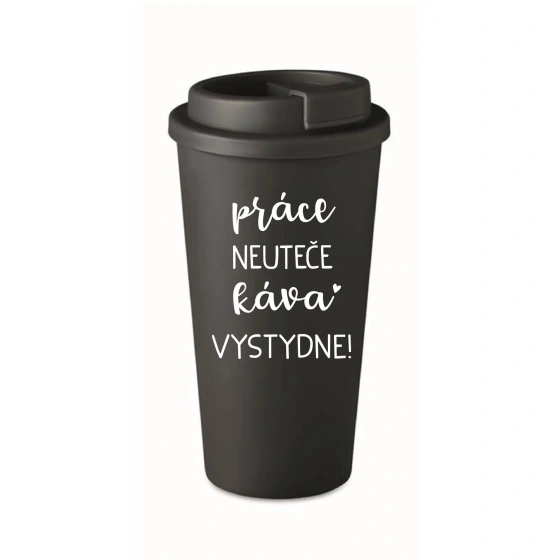 PRÁCE NEUTEČE, KÁVA VYSTYDNE! - černý termohrnek 475 ml