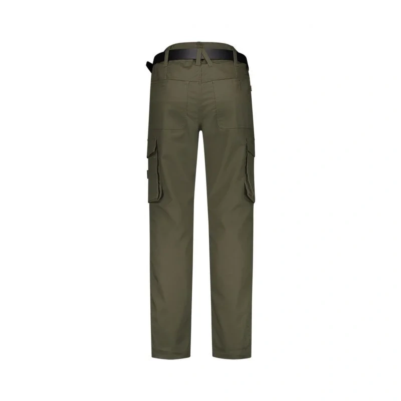 Vlastnosti: lehký materiál, elastický v pase, zvýšený pas v zadní části, multifunkční kapsy, značka