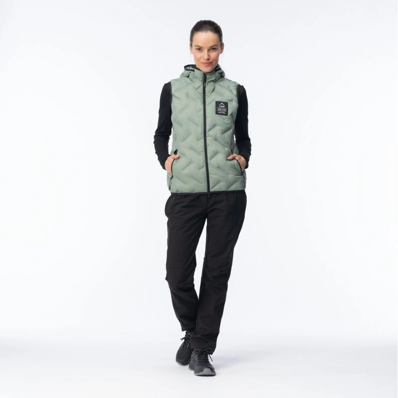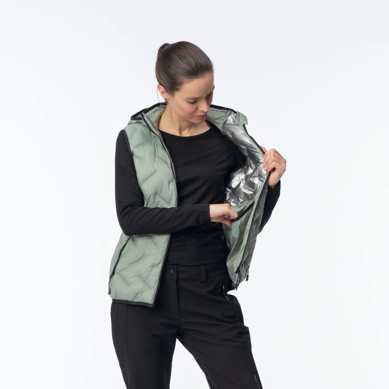 Dámská prošívaná vesta HUEL VEST PRIMALOFT® WO'S značky Elbrus byla vytvořena s použitím syntetické výplně Primaloft® Silver Insulation Thermoplume® s technologií Cross Core™, která zvyšuje úroveň tepelného komfortu v chladných dnech. Konstrukce výplně je podobná prachovému peří, zároveň je lehká a stlačitelnější. Svařované panely se syntetickou izolací zabraňují jejímu pohybu uvnitř. Tento model má integrovanou zateplenou kapuci, která vás ochrání před poryvy větru. Do dvou bočních kapes uložíte potřebné drobnosti. Další výhodou vesty HUEL VEST PRIMALOFT® WO'S je její tepelně reflexní vnitřní úprava.