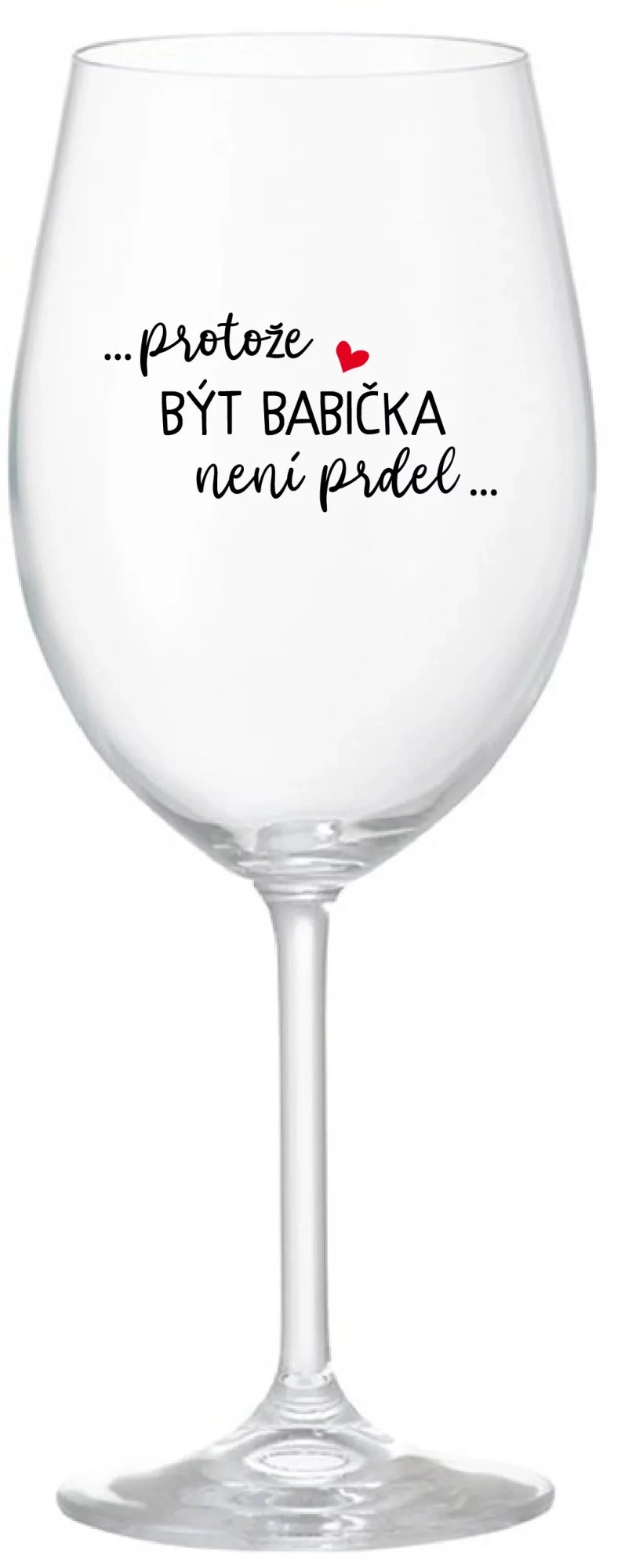 Vinná čirá sklenice s originálním motivem ...PROTOŽE BÝT BABIČKA NENÍ PRDEL.. je krásným a osobitým dárkem, které ale využijete i Vy sami třeba ve chvílích, kdy si budete chtít zpříjemnit náročný den. Tyto originální vinné sklenice jsou totiž nejen pro výjimečné události, ale i pro běžné večery, které si chcete zpříjemnit sklenkou dobrého vína. Jistě proto potěší každého milovníka vína, i toho, kdo si umí svůj život vychutnat plnými doušky.