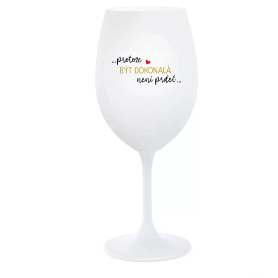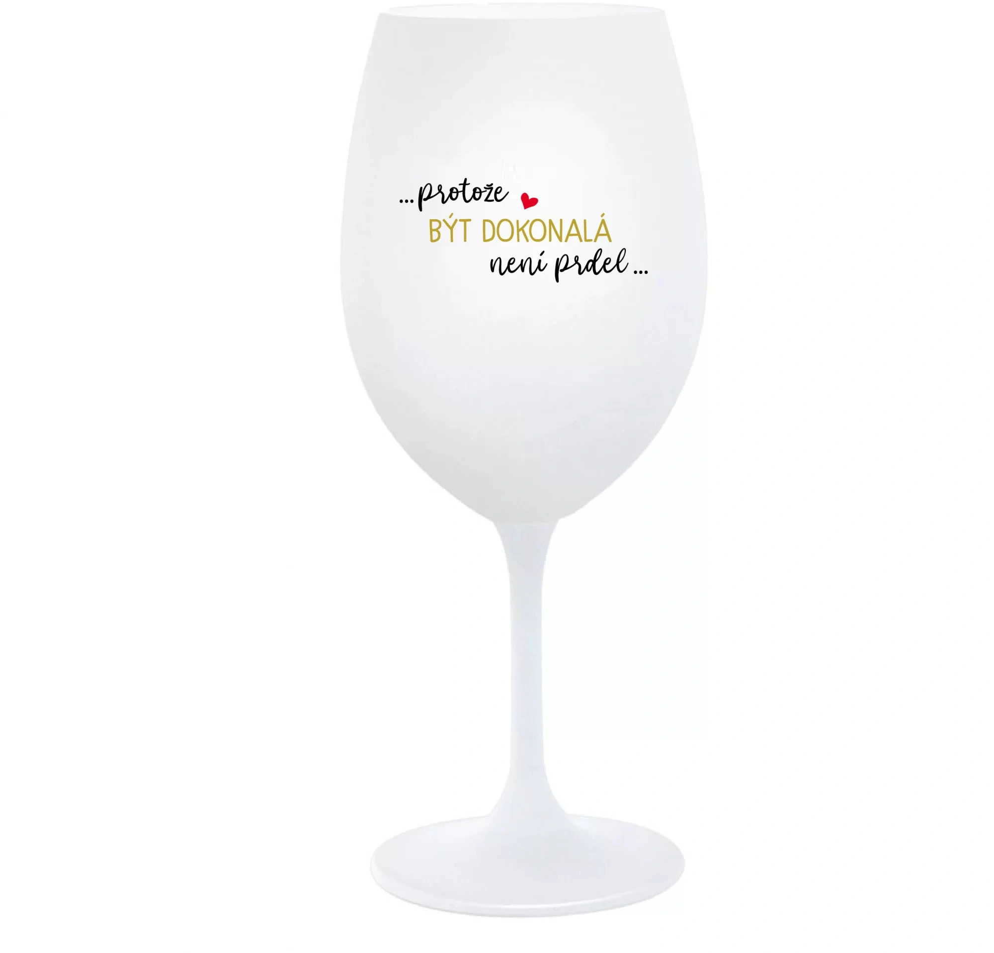 Vinná bílá sklenice s originálním motivem ...PROTOŽE BÝT DOKONALÁ NENÍ PRDEL... je krásným a osobitým dárkem, které ale využijete i Vy sami třeba ve chvílích, kdy si budete chtít zpříjemnit náročný den. Tyto originální vinné sklenice jsou totiž nejen pro výjimečné události, ale i pro běžné večery, které si chcete zpříjemnit sklenkou dobrého vína. Jistě proto potěší každého milovníka vína, i toho, kdo si umí svůj život vychutnat plnými doušky.