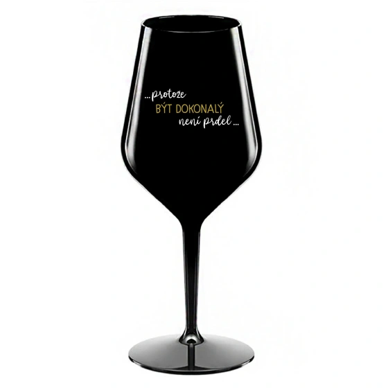 Nerozbitná černá vinná sklenice s motivem ...PROTOŽE BÝT DOKONALÝ NENÍ PRDEL... je skvělá na zahradu, pláž, výlet, piknik a parádu udělá i při kempování. Jelikož je vyrobená z kvalitního polykarbonátu je de facto nerozbitná. Je to luxusní kousek, s nímž si víno můžete vychutnat prostě kdekoliv. Mají ergonomický tvar, který příjemně padne do ruky a protože je lehká, usnadňuje to její přenášení. Je snadno skladovatelná a lehce se čistí. Díky svému designu si s ní můžete vychutnat doopravdy kdekoliv bezproblémové pití výborného vína.