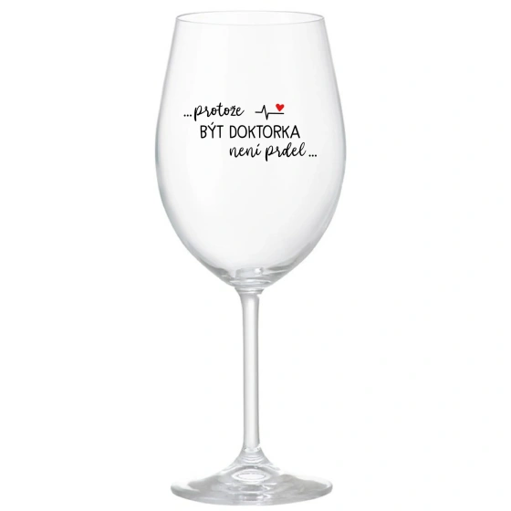 Vinná čirá sklenice s originálním motivem ...PROTOŽE BÝT DOKTORKA NENÍ PRDEL... je krásným a osobitým dárkem, které ale využijete i Vy sami třeba ve chvílích, kdy si budete chtít zpříjemnit náročný den. Tyto originální vinné sklenice jsou totiž nejen pro výjimečné události, ale i pro běžné večery, které si chcete zpříjemnit sklenkou dobrého vína. Jistě proto potěší každého milovníka vína, i toho, kdo si umí svůj život vychutnat plnými doušky.