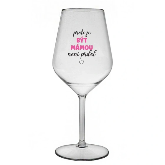 Nerozbitná čirá vinná sklenice s motivem PROTOŽE BÝT MÁMOU NENÍ PRDEL je skvělá na zahradu, pláž, výlet, piknik a parádu udělá i při kempování. Jelikož je vyrobená z kvalitního polykarbonátu je de facto nerozbitná. Je to luxusní kousek, s nímž si víno můžete vychutnat prostě kdekoliv. Mají ergonomický tvar, který příjemně padne do ruky a protože je lehká, usnadňuje to její přenášení. Je snadno skladovatelná a lehce se čistí. Díky svému designu si s ní můžete vychutnat doopravdy kdekoliv bezproblémové pití výborného vína.