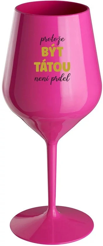 Nerozbitná růžová vinná sklenice s motivem PROTOŽE BÝT TÁTOU NENÍ PRDEL je skvělá na zahradu, pláž, výlet, piknik a parádu udělá i při kempování. Jelikož je vyrobená z kvalitního polykarbonátu je de facto nerozbitná. Je to luxusní kousek, s nímž si víno můžete vychutnat prostě kdekoliv. Mají ergonomický tvar, který příjemně padne do ruky a protože je lehká, usnadňuje to její přenášení. Je snadno skladovatelná a lehce se čistí. Díky svému designu si s ní můžete vychutnat doopravdy kdekoliv bezproblémové pití výborného vína.