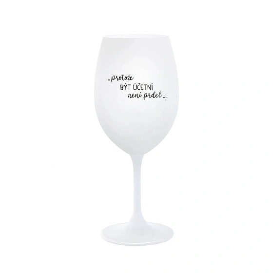 Vinná bílá sklenice s originálním motivem PROTOŽE BÝT ÚČETNÍ NENÍ PRDEL je krásným a osobitým dárkem, které ale využijete i Vy sami třeba ve chvílích, kdy si budete chtít zpříjemnit náročný den. Tyto originální vinné sklenice jsou totiž nejen pro výjimečné události, ale i pro běžné večery, které si chcete zpříjemnit sklenkou dobrého vína. Jistě proto potěší každého milovníka vína, i toho, kdo si umí svůj život vychutnat plnými doušky. Materiál sklo. Vyrobené s láskou v ČR