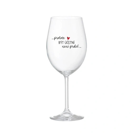 Vinná čirá sklenice s originálním motivem PROTOŽE BÝT ÚČETNÍ NENÍ PRDEL je krásným a osobitým dárkem, které ale využijete i Vy sami třeba ve chvílích, kdy si budete chtít zpříjemnit náročný den. Tyto originální vinné sklenice jsou totiž nejen pro výjimečné události, ale i pro běžné večery, které si chcete zpříjemnit sklenkou dobrého vína. Jistě proto potěší každého milovníka vína, i toho, kdo si umí svůj život vychutnat plnými doušky. Materiál sklo. Vyrobené s láskou v ČR