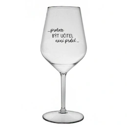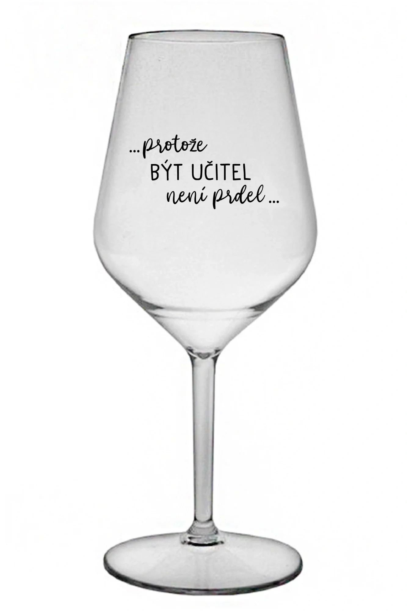 Nerozbitná čirá vinná sklenice s motivem ...PROTOŽE BÝT UČITEL NENÍ PRDEL... je skvělá na zahradu, pláž, výlet, piknik a parádu udělá i při kempování. Jelikož je vyrobená z kvalitního polykarbonátu je de facto nerozbitná. Je to luxusní kousek, s nímž si víno můžete vychutnat prostě kdekoliv. Mají ergonomický tvar, který příjemně padne do ruky a protože je lehká, usnadňuje to její přenášení. Je snadno skladovatelná a lehce se čistí. Díky svému designu si s ní můžete vychutnat doopravdy kdekoliv bezproblémové pití výborného vína.