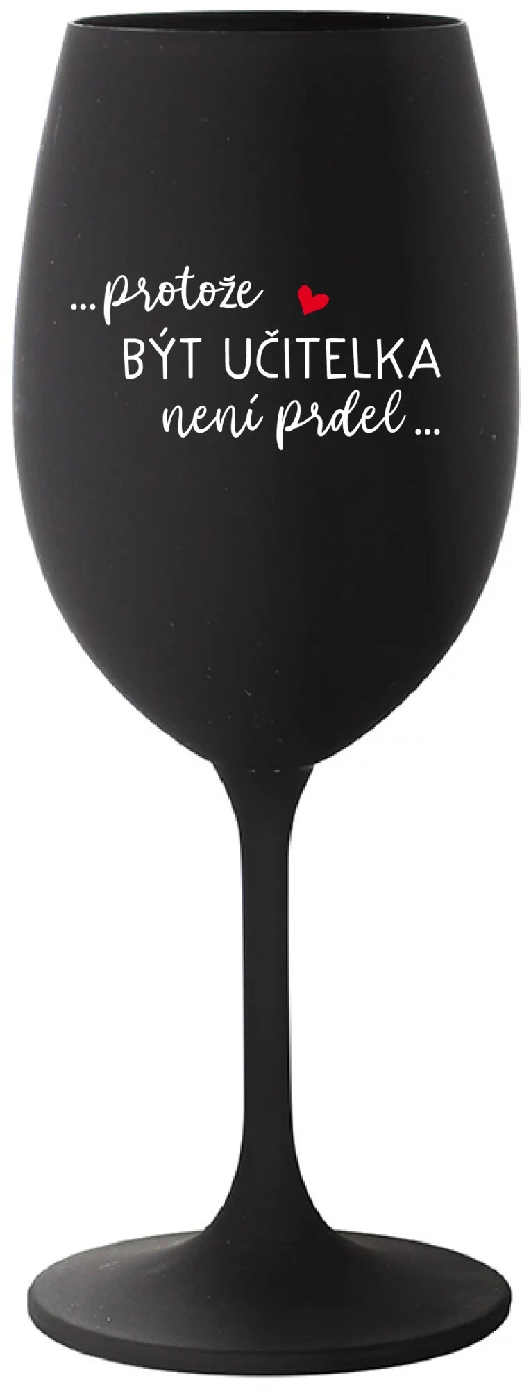 Vinná černá sklenice s originálním motivem ...PROTOŽE BÝT UČITELKA NENÍ PRDEL... je krásným a osobitým dárkem, které ale využijete i Vy sami třeba ve chvílích, kdy si budete chtít zpříjemnit náročný den. Tyto originální vinné sklenice jsou totiž nejen pro výjimečné události, ale i pro běžné večery, které si chcete zpříjemnit sklenkou dobrého vína. Jistě proto potěší každého milovníka vína, i toho, kdo si umí svůj život vychutnat plnými doušky.
