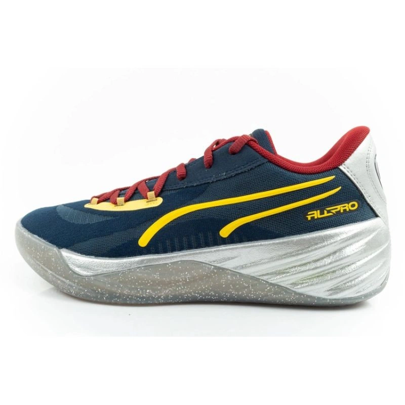 Puma All-Pro Nitro Polar Express v barevném provedení Club Navy-Intense Red je profesionální sportovní obuv určená pro dynamickou basketbalovou hru.