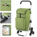 Dvojice trojitých koleček znamená, že vozík snadno vytáhnete do schodů, i když je plný těžkých nákupů .