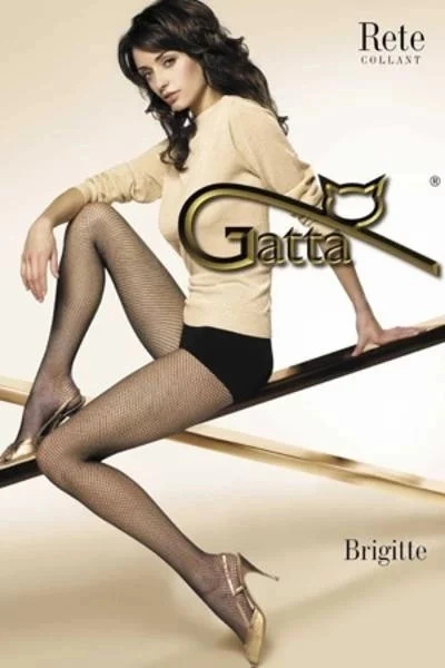 Dámské, síťované, punčochové kalhoty Gatta Brigitte 01 se vzorem ok typu kabaretka, vyrobené z příze opředené nitě bez vyznačené sedací a prstové části.