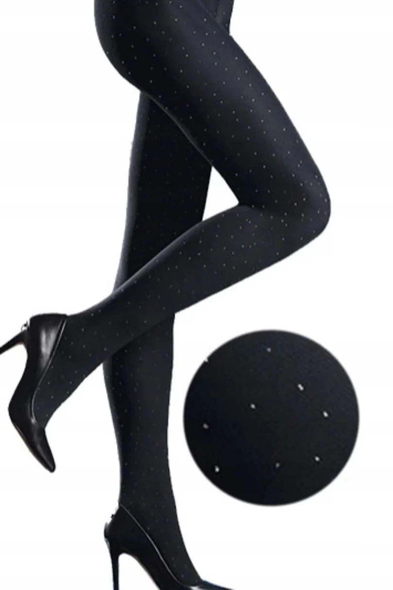 Ladostné punčocháče s třpytivým potiskem třpytivých tečekós. Vyrobeno z mikrovlákna.Měkký, neprůhledný, matný.