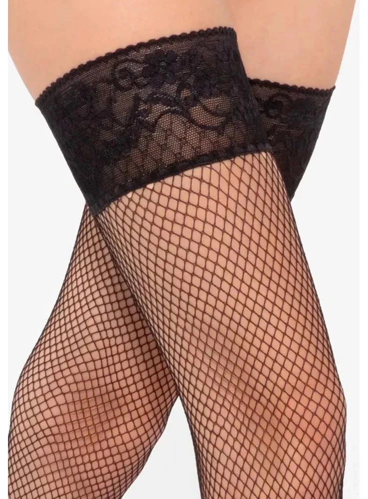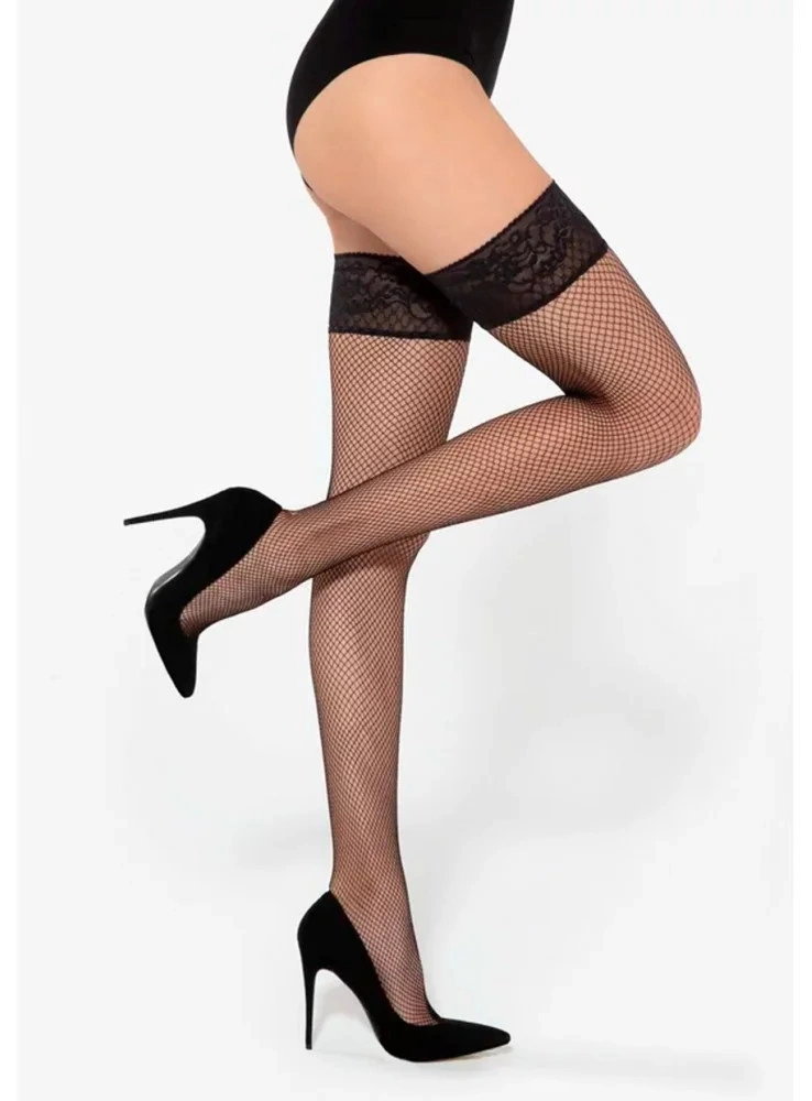Dámské síťkované punčochy k podvazkovému pásu V-10684 Černá - Axami