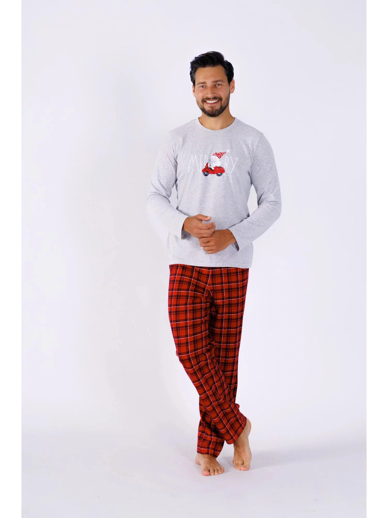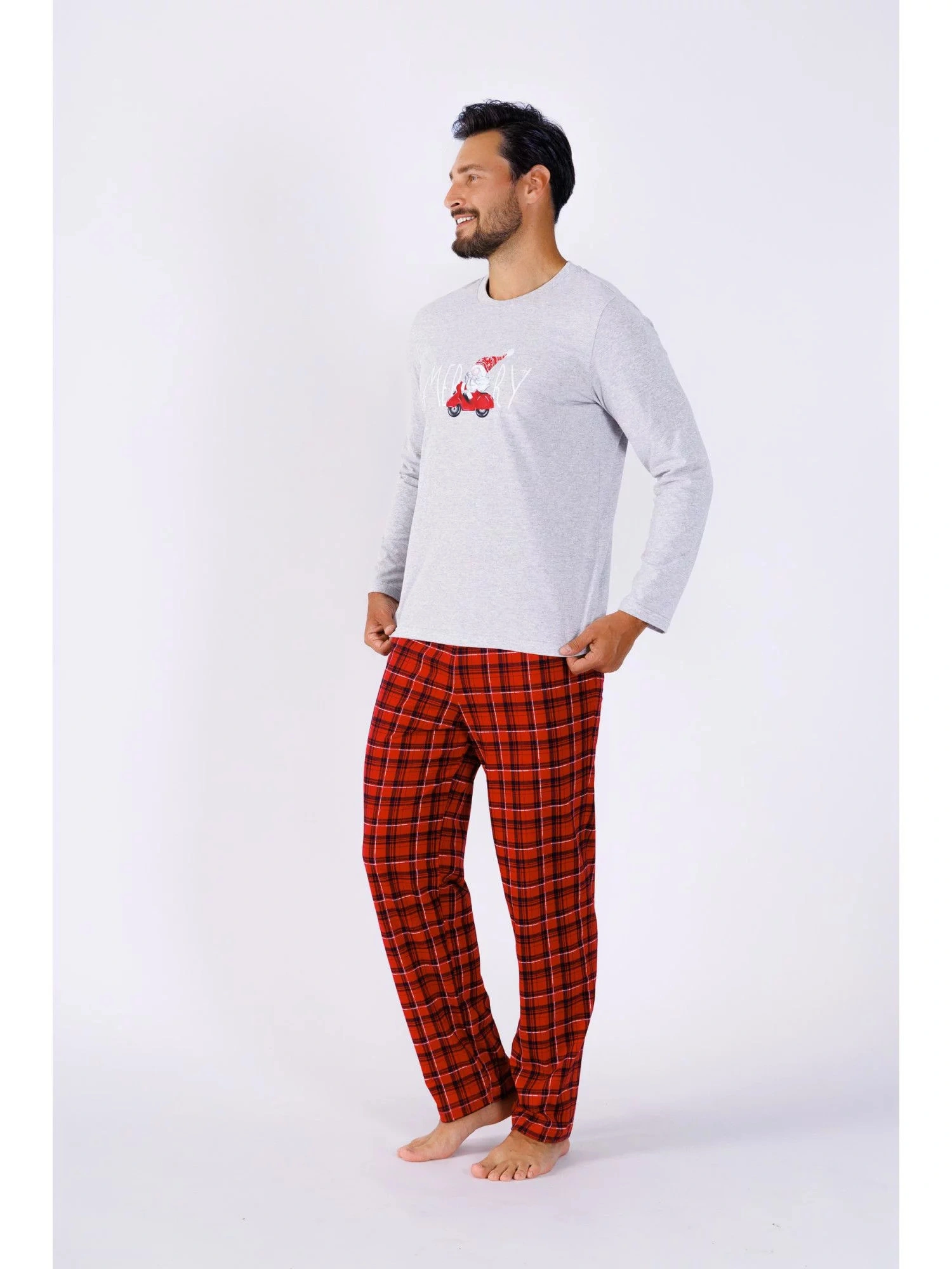 Pánské pyžamo Vamp - výstřih do V - dlouhý rukáv - kalhoty s potiskem Materiálové složení: 100% b