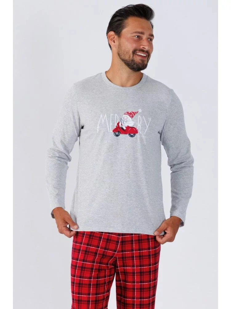 Pánská pyžama - tričko s dlouhým rukávem - malý potisk na přední straně - kulatý výstřih - dlouhé ko