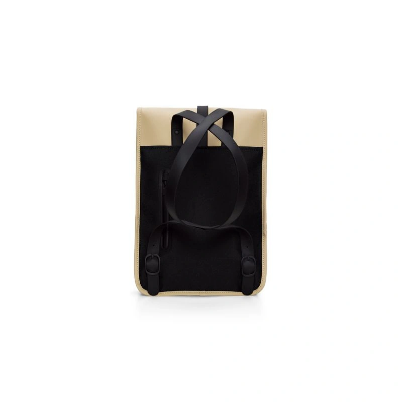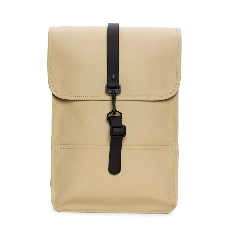 Plecak Mini to zmniejszona wersja Plecaka. Sylwetka charakteryzuje się wydatną klapą i centralnym paskiem zapinanym na karabińczyk. Ten czysty i zawsze nowoczesny wodoodporny plecak ma wewnętrzną kieszeń na laptopa, komorę główną i ukrytą zewnętrzną kieszeń na telefon na tylnym panelu.