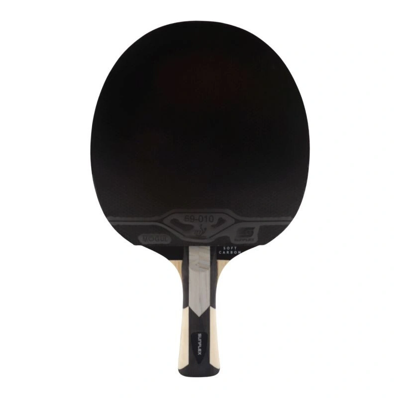 Raketa na stolní tenis Sunflex Supreme Soft Carbon 10354 Raketa na stolní tenis Sunflex je vhodná pro pokročilé klubové hráče. Odolná konstrukce s povrchem Mogul a podložkou o tloušťce 2,2 mm. Technologie Ergo Grip neboli ergonomický tvar rukojeti. Technologie Carbon Fleece neboli vrstva z uhlíkových vláken přidaná mezi vrstvy desky, která má na svědomí lepší kontrolu míčku a rychlost. Centrální úderová plocha je mnohem větší. Technické údaje:- Materiál rakety: dřevo, guma, houba- Rukojeť: konkávní- Podložka: Mogul 2,2 mm- Schváleno ITTF (Mezinárodní federace stolního tenisu) - Rychlost: 100/100- Spin: 85/100- Kontrola: 70/100.