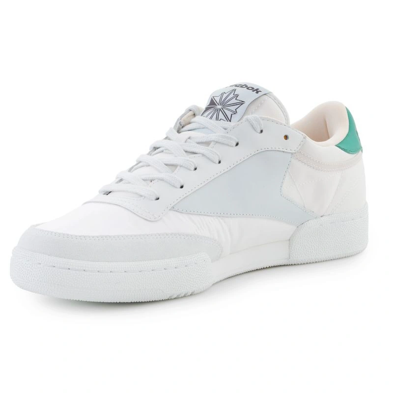 Reebok Club C RMIA011C99FAB00110359 "Tofu Green" je teniska inspirovaná klasikou 80. let, která nabízí kombinaci retro estetiky a každodenního pohodlí. svršek je vyroben z přírodní kůže, která dodává odolnost a zdůrazňuje prémiový charakter modelu. barva Tofu Green v akcentech dodává svěží a módní vzhled, dobře kontrastuje s bílým základem. bota má nízký profil, tradiční šněrování, polstrovaný límec a jazyk pro pohodlí. vnitřek je pravděpodobně textilní; mezipodešev je vyrobena z EVA pěny nebo podobného materiálu pro lehkost a tlumení. gumová podrážka nabízí přilnavost a odolnost. ideální pro běžné nošení, streetwear a každodenní nošení.