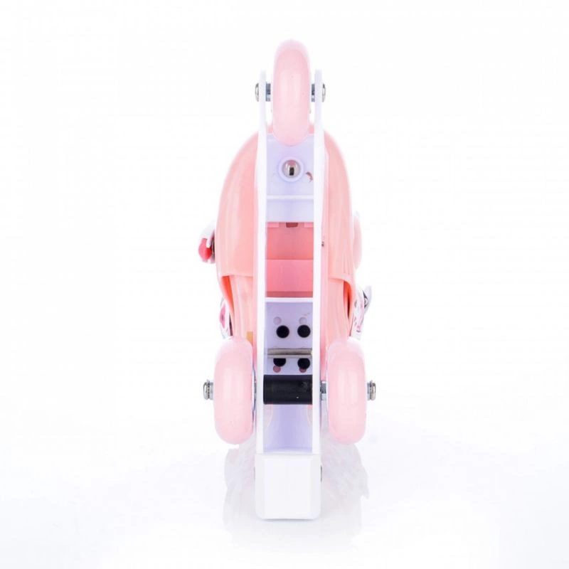 Regulovatelné kolečkové brusle TEMPISH Baby Skate Wild jsou ideálním řešením pro dívky, které dělají první krůčky (vlastně kolečka) ve světě jízdy na kolečkových bruslích!. Tato dívčí sada obsahuje vše, co je nezbytné pro bezpečnou a pohodlnou jízdu: pár kolečkových bruslí, helmu a tři sady chráničů (kolena, lokty, zápěstí). Všechny prvky sady lze pohodlně skladovat a přepravovat v přiloženém batohu. Hlavní vlastnosti: Kolečkové brusle: Mají jednoduchý a pohodlný systém nastavení velikosti, který umožňuje přizpůsobení až ve 4 velikostech. Navíc lze kolečka nastavit na stabilnější možnost zdvojením zadních koleček, což je obzvláště užitečné pro začátečníky. Kolečka: CATCH 64x24mm 82A, pro velikosti XS, (pro krátký podvozek stačí pouze 3 kolečka). Průměr šroubu: 6mm, délka 33mm. Přilba: Zajišťuje bezpečnost XS: Obvod hlavy 48-51 cm. Chrániče: Tři sady chráničů na kolena, lokty a zápěstí, zajišťující plnou ochranu při učení jízdy na kolečkových bruslích. Batoh: Praktický batoh umožňující snadné uložení a přepravu celé sady. Velikost: 26-29 (délka vnitřní stélky: 17,0-20,5 cm) Sada WILD BABY SKATE je kompletní sada pro výuku jízdy na kolečkových bruslích pro nejmenší. Obsahuje vše, co je nezbytné k zajištění bezpečnosti a pohodlí při jízdě: nastavitelné kolečkové brusle, helmu a chrániče. Navíc praktický batoh usnadňuje skladování a přepravu. Díky možnosti regulace velikosti a stabilizaci koleček zdvojením zadních koleček je sada ideální volbou pro začínající malé bruslaře TECHNICKÉ PARAMETRY Určení Rekreační a kondiční jízda, nízké a střední zatížení, pro začátečníky a středně pokročilé uživatele Rám PP hi-impact, rám s kontrolou polohy Velikost koleček 3 kolečka velikost XS 64mm Tvrdost koleček 85A Ložiska 608, Z Systém vázání Žádný Typ | Skořepina boty Povrch Odolný proti nárazu PP, PVC, NYLON, 3-dílný, měkký Vložka (vnitřní ponožka) Zpevněný NYLON/VINYL - nastavitelný, zesílený prvky z PVC, konstrukce boty střední výšky Brzda V sadě Horní zapínání Přezka Zapínání 45 stupňů Přezka Os - Hmotnostní limit 60 kg