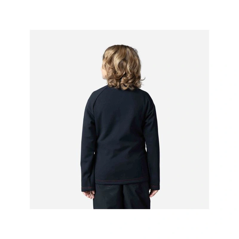 Chlapecká druhá vrstva, která je ideální pro zahřátí v chladných nebo větrných dnech na horách, je celorozepínací fleecová bunda Rossignol Hero Clim Fleece Jacket vyrobená z měkké, pružné tkaniny střední gramáže, takže neomezuje v pohybu a velmi pohodlně se nosí. Záložka kryjící horní část zipu zabraňuje odírání a má dvě boční kapsy na zip. Je praktická a teplá a hodí se pro všechna čtyři roční období.