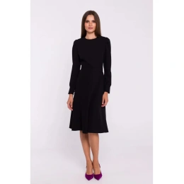 DETAILY PRODUKTU: tkaná látka rozevláté šaty zaoblený výstřih dlouhé rukávy s manžetami na knoflíky detail knoflíku pásek v pase délka pod kolena bez podšívky naše modelka je vysoká 174 cm a nosí velikost S navrženo a vyrobeno v Polsku