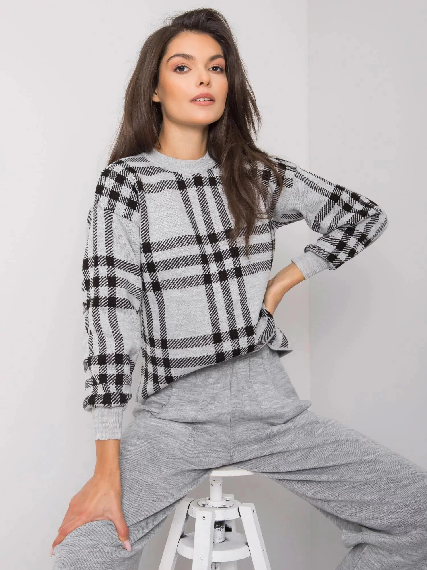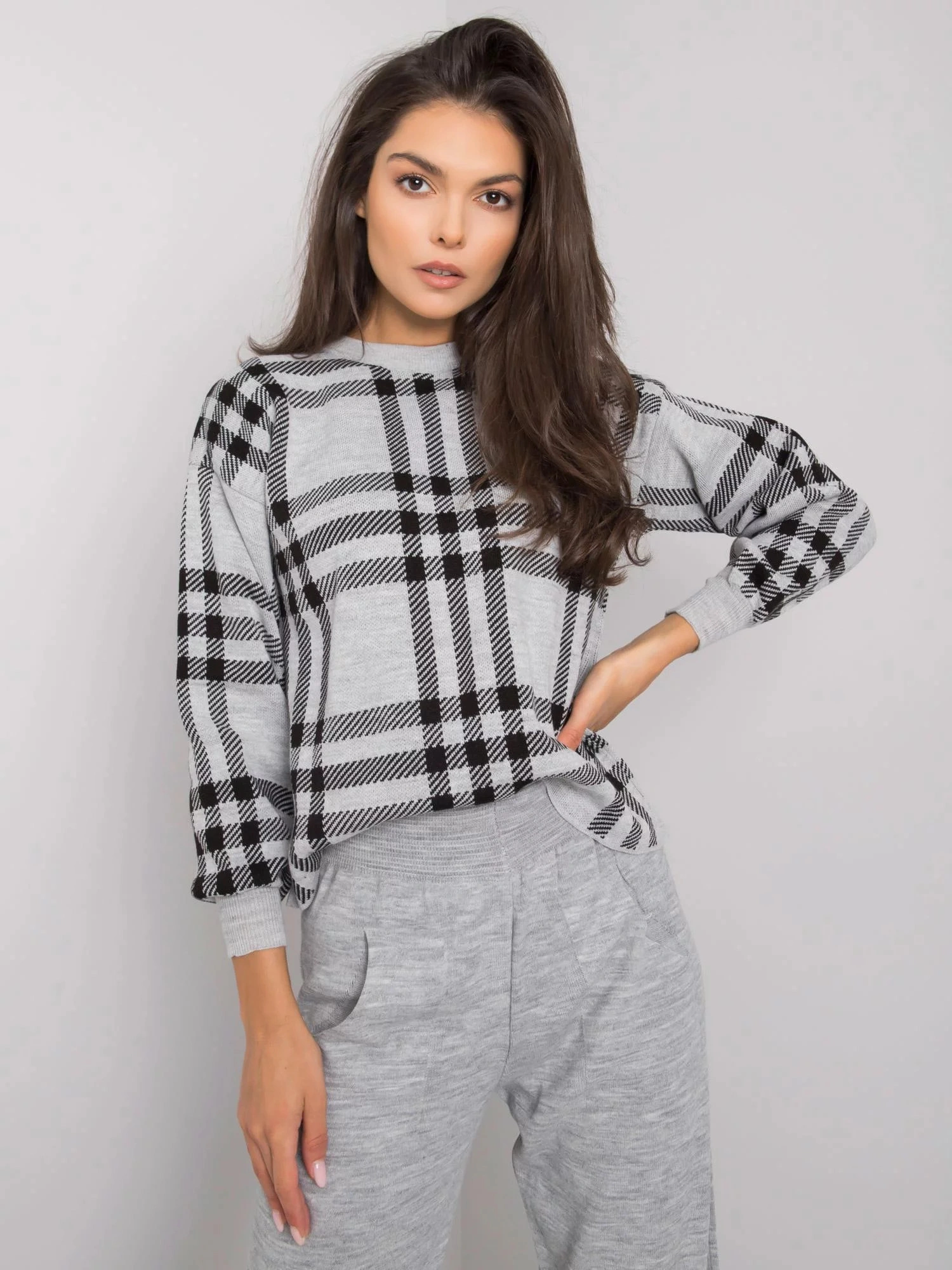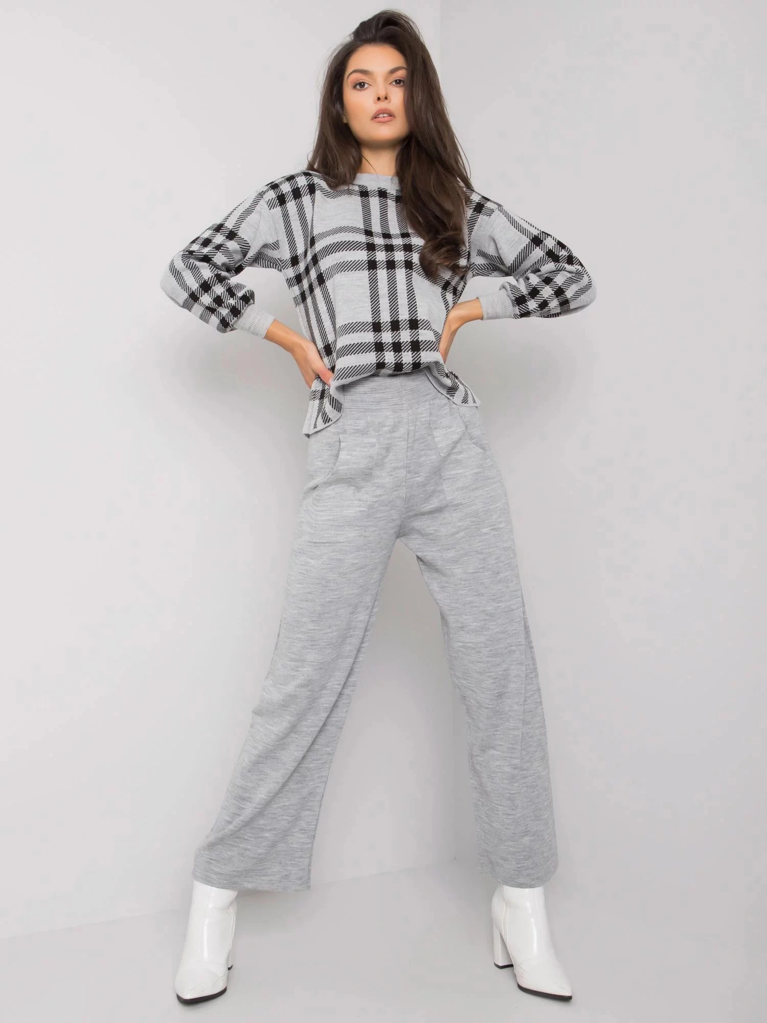 Šedá pletená souprava.