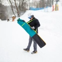 • Ultralehká a přenosná taška má také funkci batohu. Díky nastavitelným ramenním popruhům lze tašku/batoh rychle přizpůsobit individuálním preferencím. Přepravu usnadňuje také madlo pro přenášení. Stejně snadné je i skladování tašky, protože se skládá naplocho a ve složeném stavu nezabírá mnoho místa. Po sezóně lze tašku použít jako další zavazadlo na různé výlety nebo k uložení bot, bruslí či kolečkových bruslí.