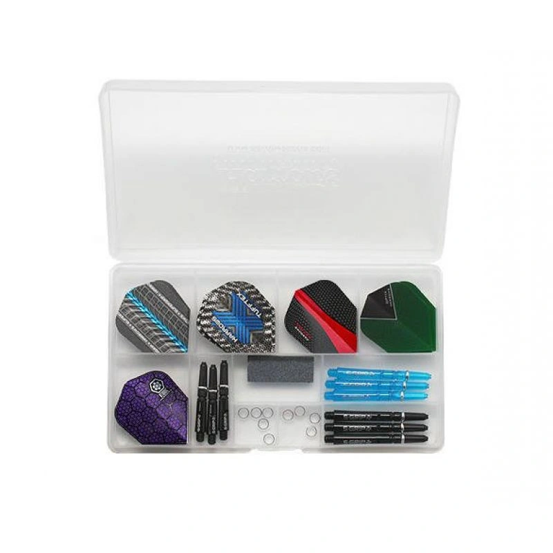 Profesionální sada příslušenství k šipkám, všechny položky z nejnovějších kolekcí, vše v praktické krabičce.