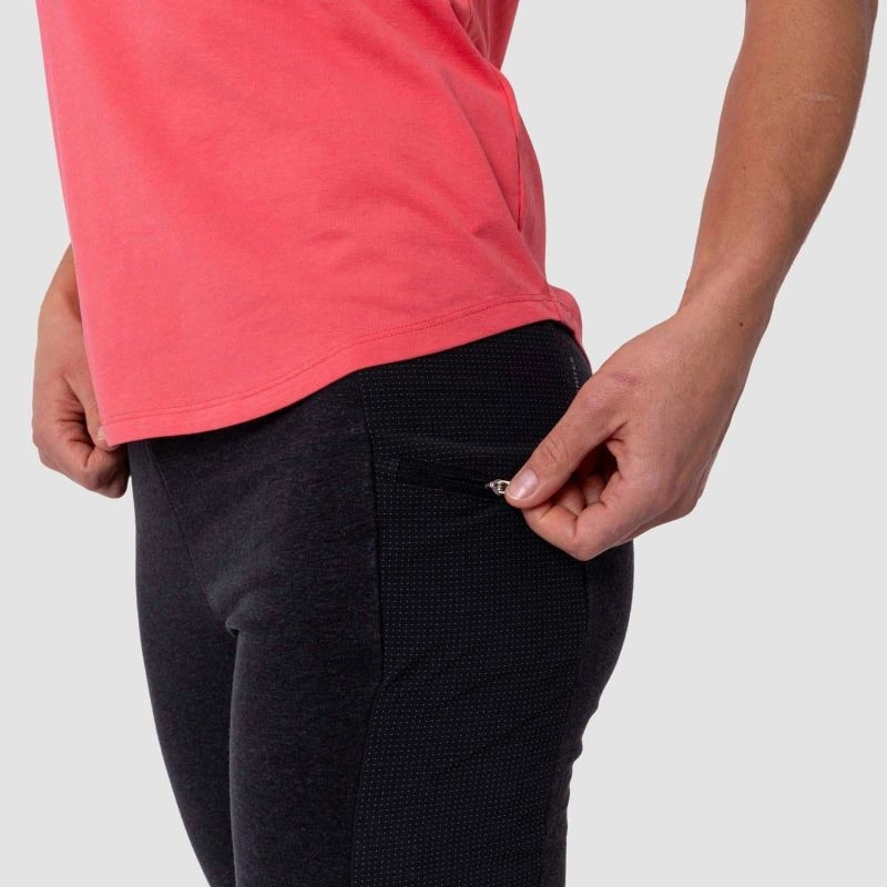 Ergonomický střih, vložky z materiálu Durastretch a elastické švy umožňují nohám volně pracovat, takže můžete s lehkostí stoupat do vysokých schodů, kroutit boky a zahákovat paty. Elastický pas pohodlně sedí pod popruhy a díky zúženým nohavicím ve spodní části zůstanou malé, přesné kroky na očích.