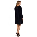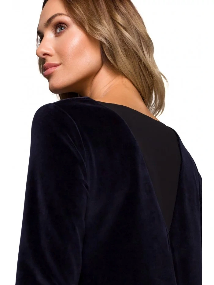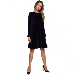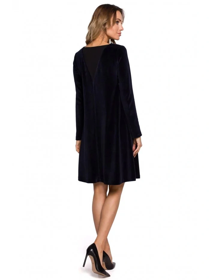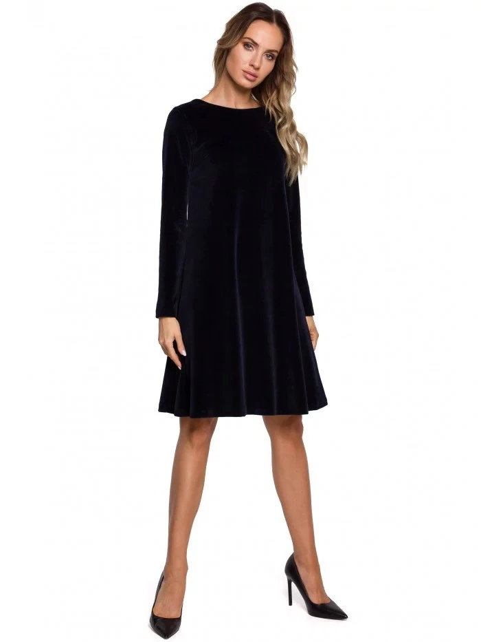 - uvolněný střih šatů s dlouhými rukávy z měkké sametové látky,